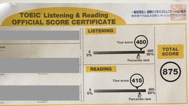 TOEICは300点台から875点まで上げたよ〜!
